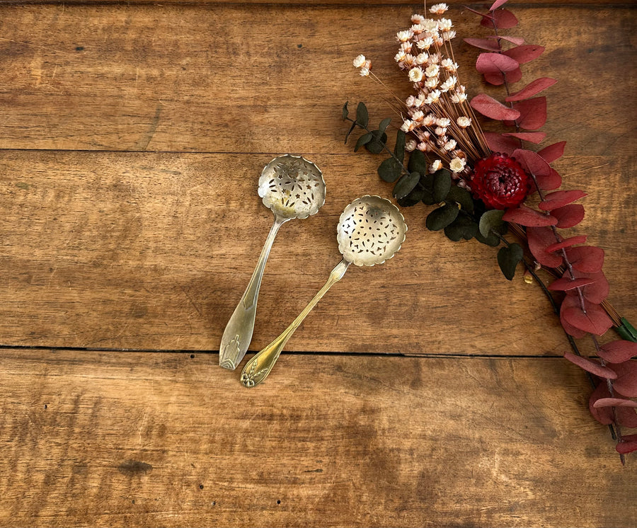 Ravissantes petites cuillères à saupoudrer ajourées en métal argenté . Estimation années 1900. Vendues à l'unité