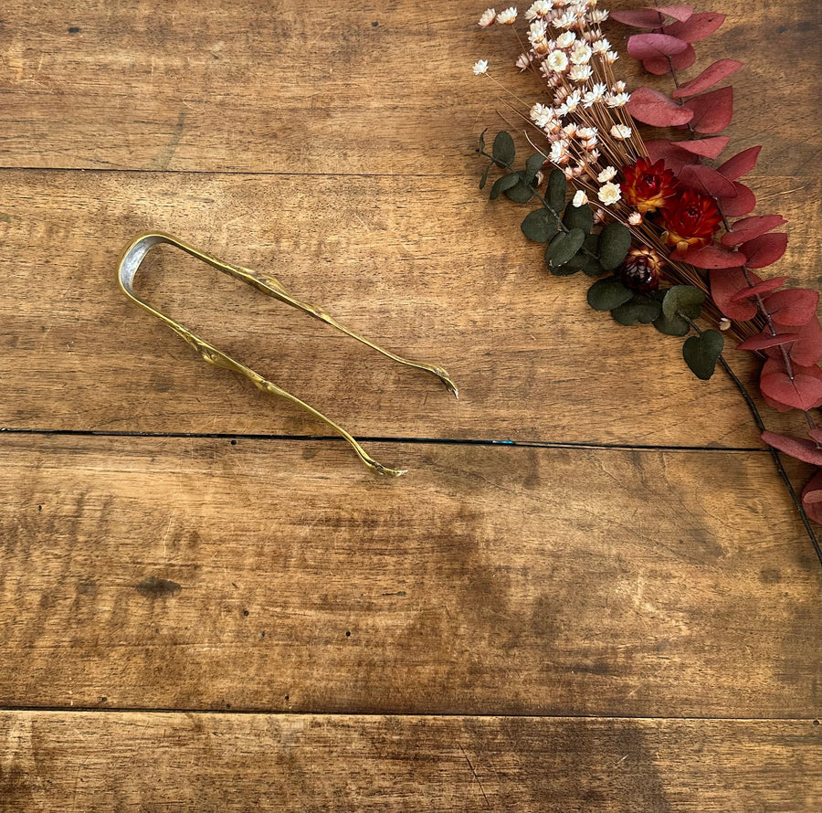 Pince à sucre en laiton et cuivre style Louis XV. Estimation années 1900