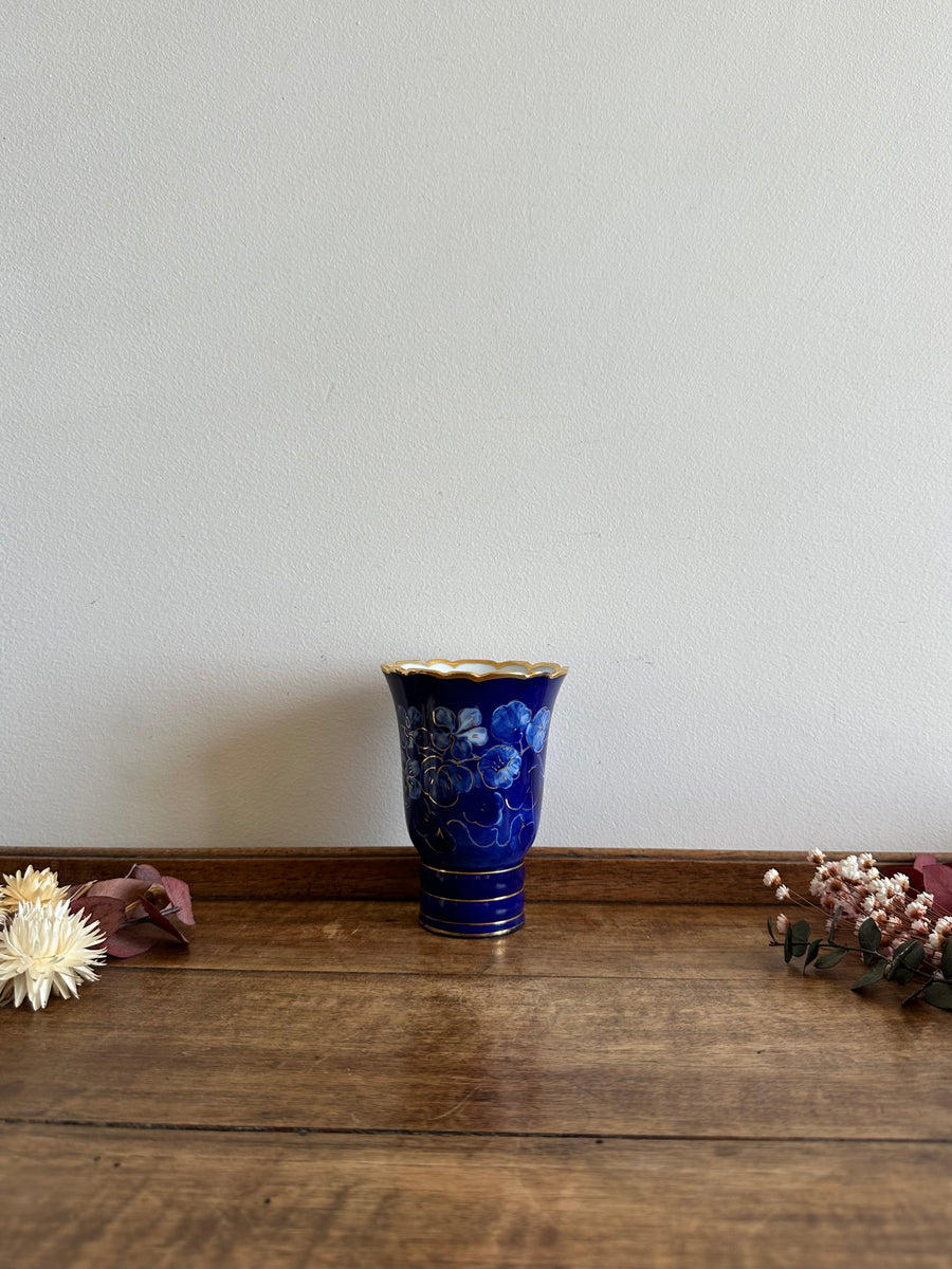 Vase en porcelaine bleu de four peint à la main par Chaufriasse marcel années 60
