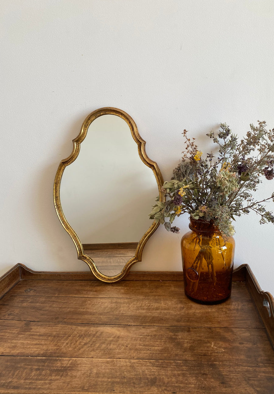 Beau miroir en bois doré aux jolies formes chantournées