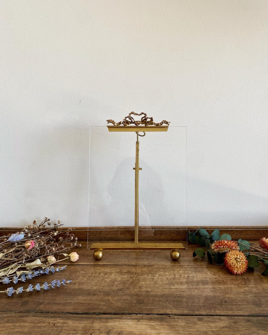Support cadre photo en laiton datant du XIX. La vitre en parfait état n’est pas d’origine.
