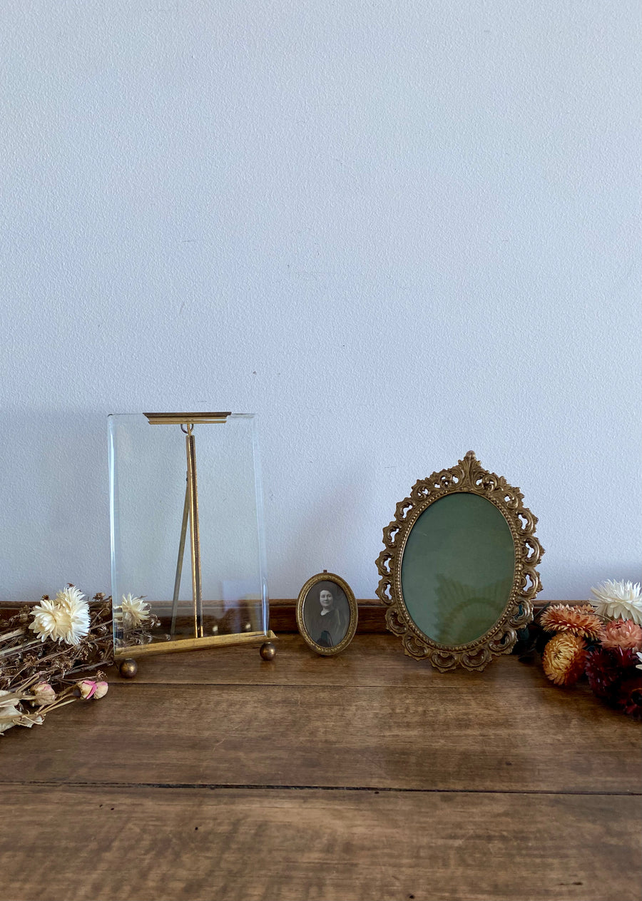 Cadre en laiton dentelé: 16,2 cm (longueur), 12,2 cm (largeur), 1 cm (épaisseur)