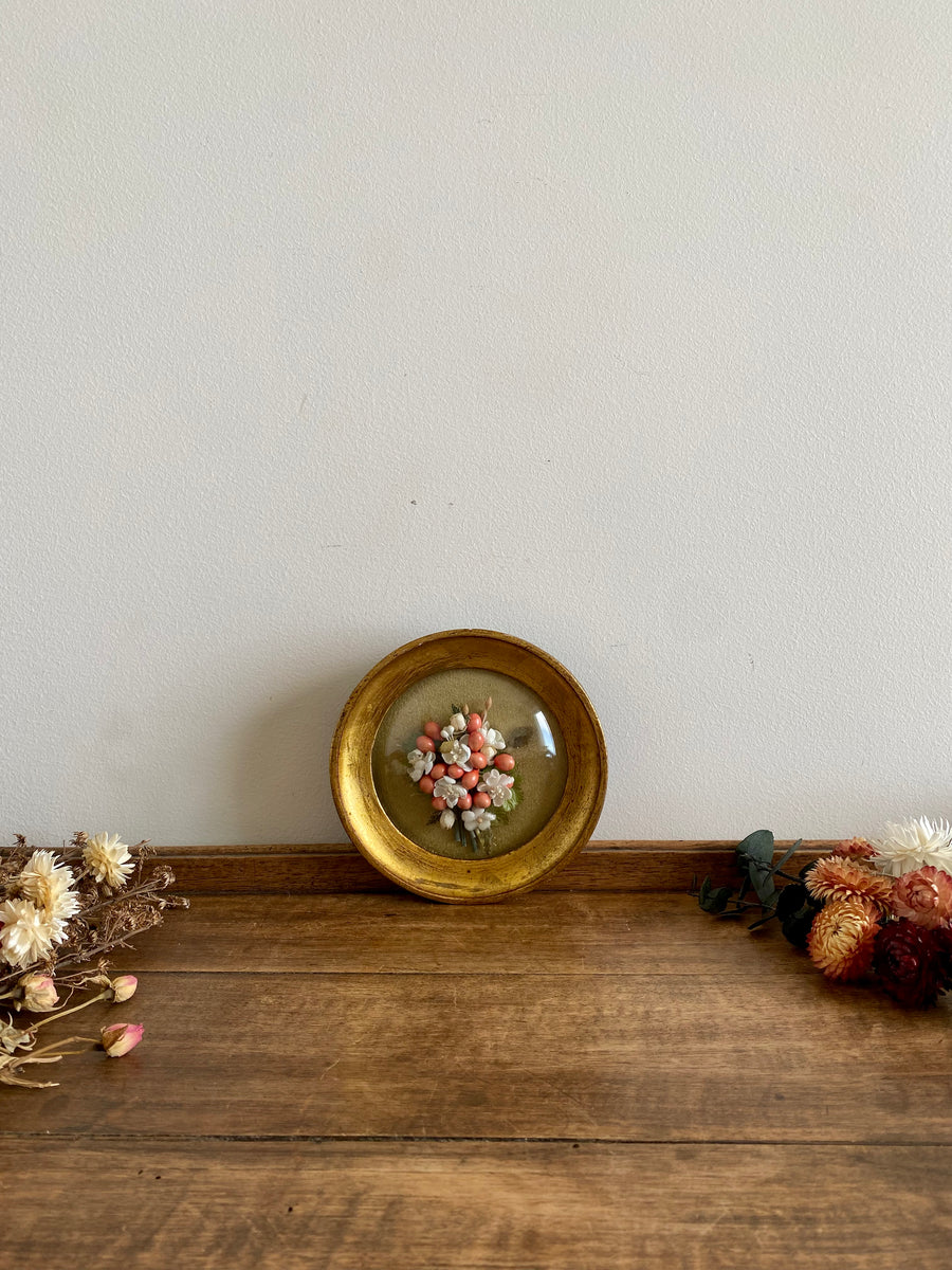 Bouquet de fleurs sechées dans son charmant petit médaillon bombé.