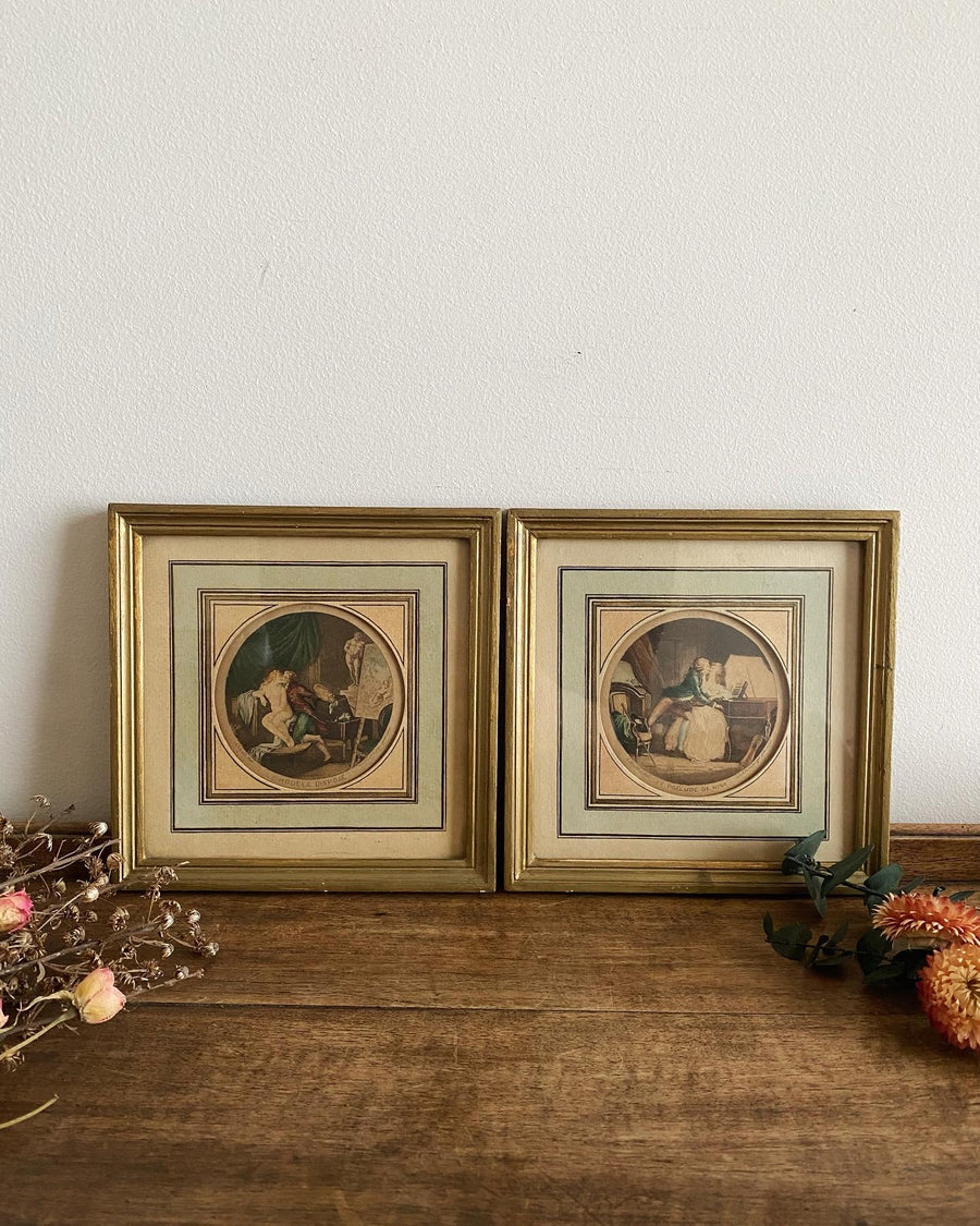Ensemble de deux jolies petites gravures : le prélude de Nina & le modèle disposé.
