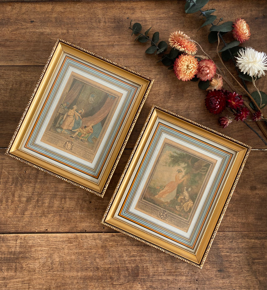 Ensemble de deux jolies petites gravures d'époque : Le petit jour et Le chiffre d'amour