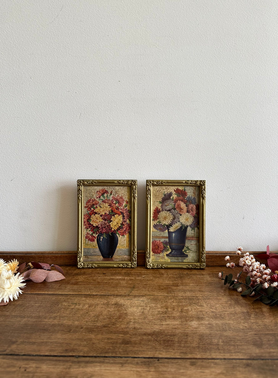 Impressions vernies rectangulaires bouquets de fleurs dans vases cadres dorés