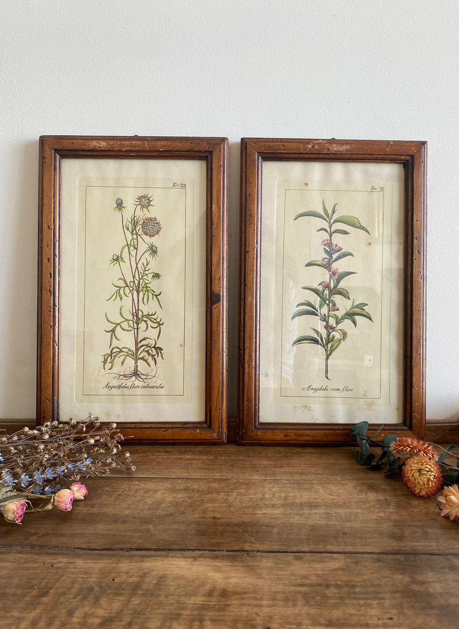 Lot de deux jolis imprimés botaniques dans leurs cadres en bois. Angustifolia flore sulcoeruleo & Amygdala cum flore