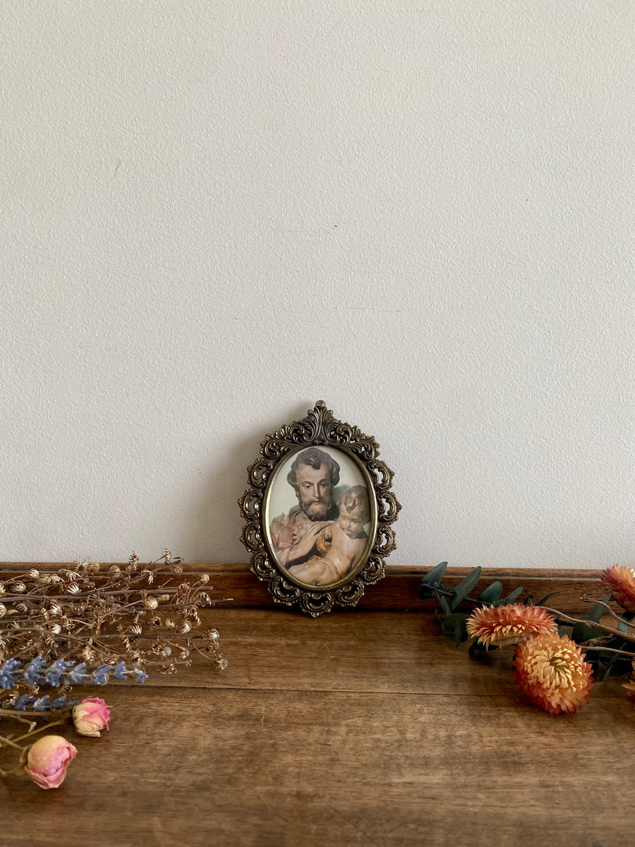 Adorable petit médaillon en métal doré baroque. Libre à vous de changer la photo si vous le souhaitez !