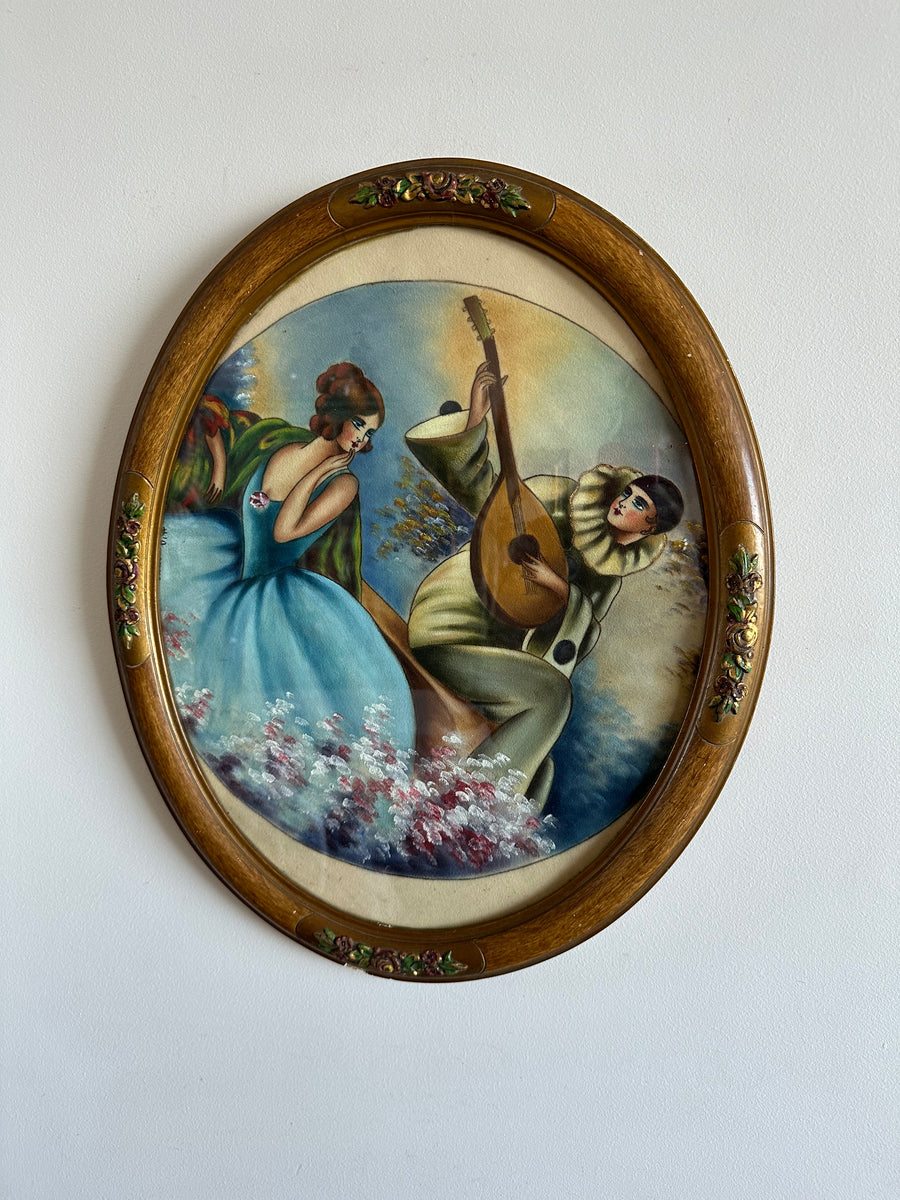 Coup de coeur pour ce pastel signé datant de la fin 19ème représentant Pierrot jouant de la mandoline à Colombine. On aime les roses sculptées sur le cadre époque Napoléon III et le charme désuet qui s'en dégage. Belle pièce colorée comme on les aime !