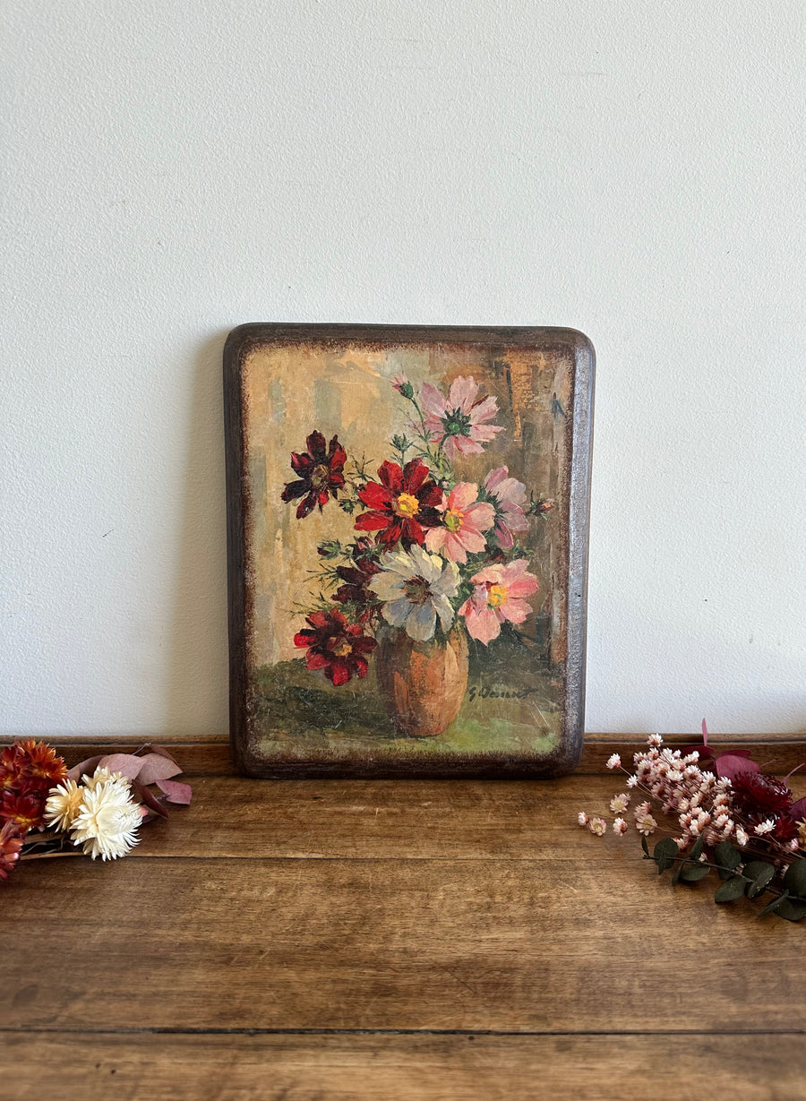 Ravissante impression sur bois fleurie. Style icône avec bois épais. Estimation années 50.