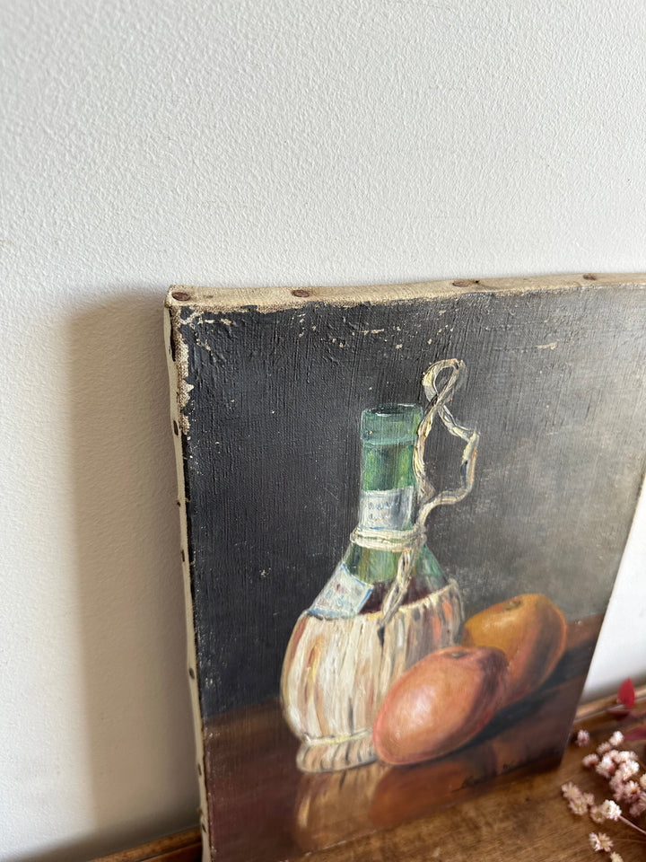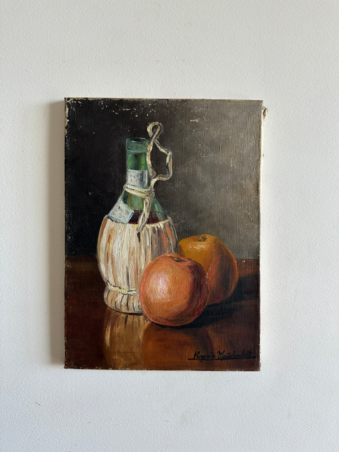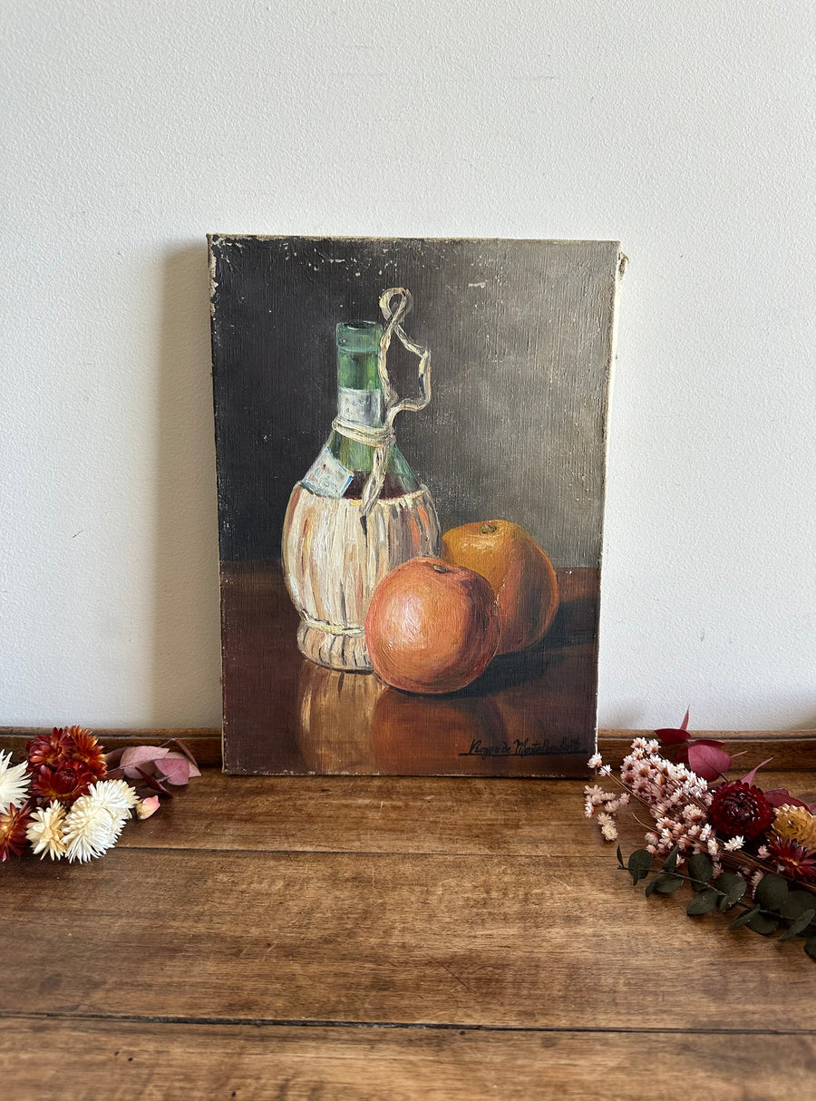 Jolie peinture sur toile datant des années 30. Signée Roger De Montalembert 1896-1946. Représentant une dame jeanne et deux oranges.Objet ancien qui apportera une touche de nostalgie classique à votre intérieur. A noter, des petites traces du temps visibles sur les photos.
