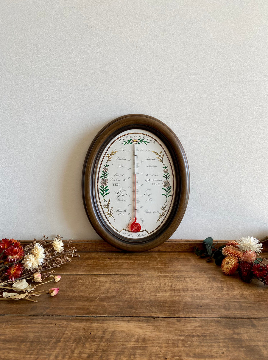 Vous aviez beaucoup aimé le dernier, en voici donc un nouveau ! Thermomètre L M à Bordeaux vintage avec son joli cadre ovale en bois, qui fonctionne parfaitement !