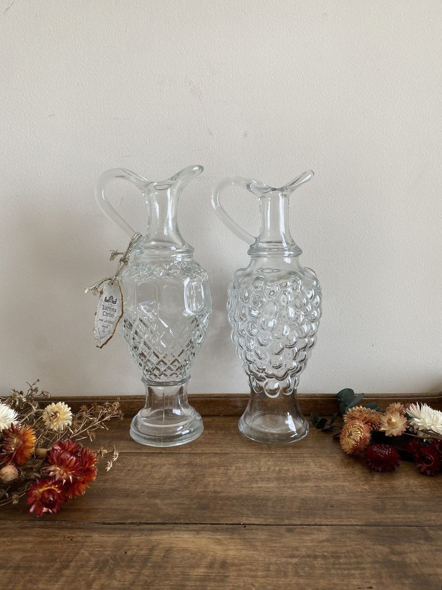 Ensemble de deux jolies carafes en verre ciselé. Anciennes bouteilles de Lacrima Christi, Vino liquoroso. Vendues séparément.