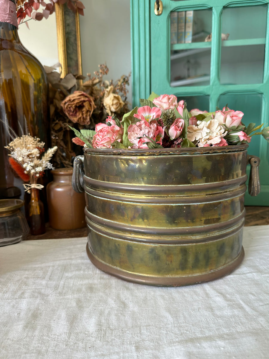 Superbe cache-pot en cuivre de taille XL. Objet datant du début XXème, dans son jus comme on les aime.