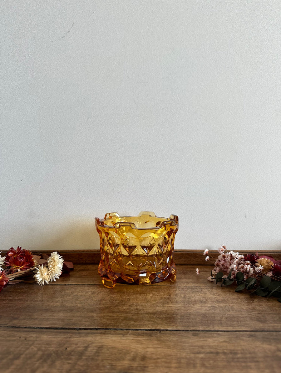 Adorable petit vase/cache pot en verre moulé ambré. Fabrication allemande. Signé OG, Oberhausen Glas. Estimation années 60.