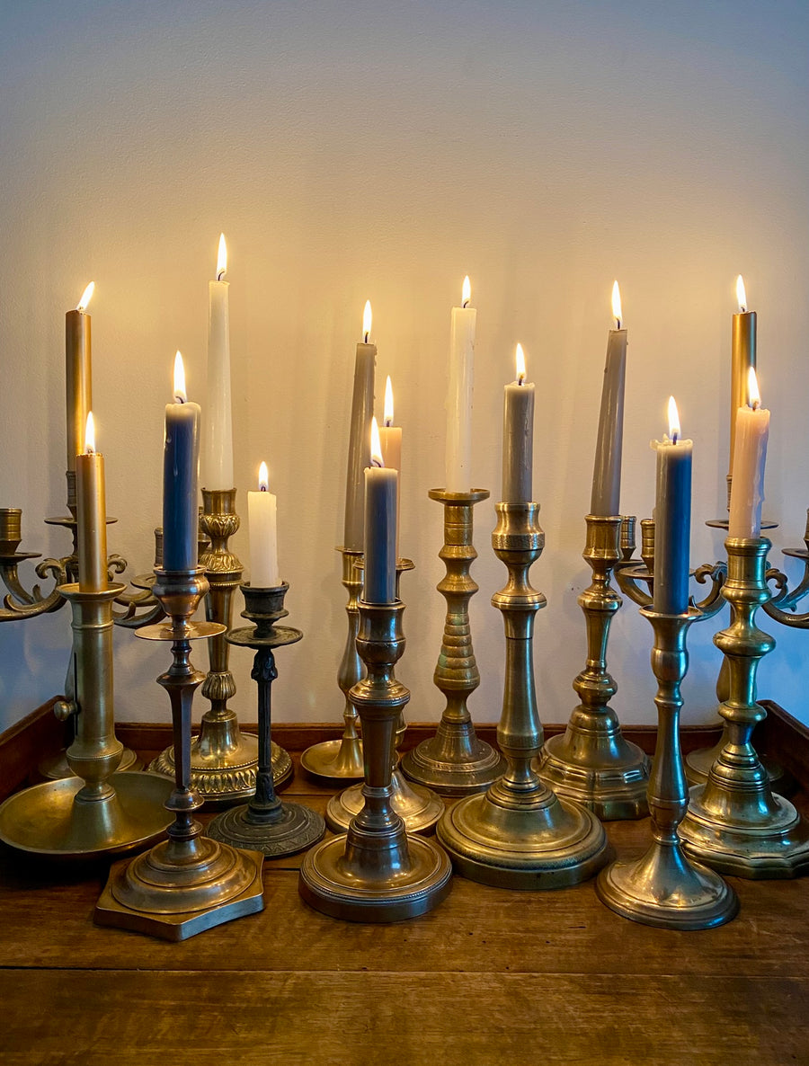 Elégant ensemble de bougeoirs en laiton et métal pour tous les goûts ! Vendus à l'unité à l'exception des chandeliers à 5 têtes.