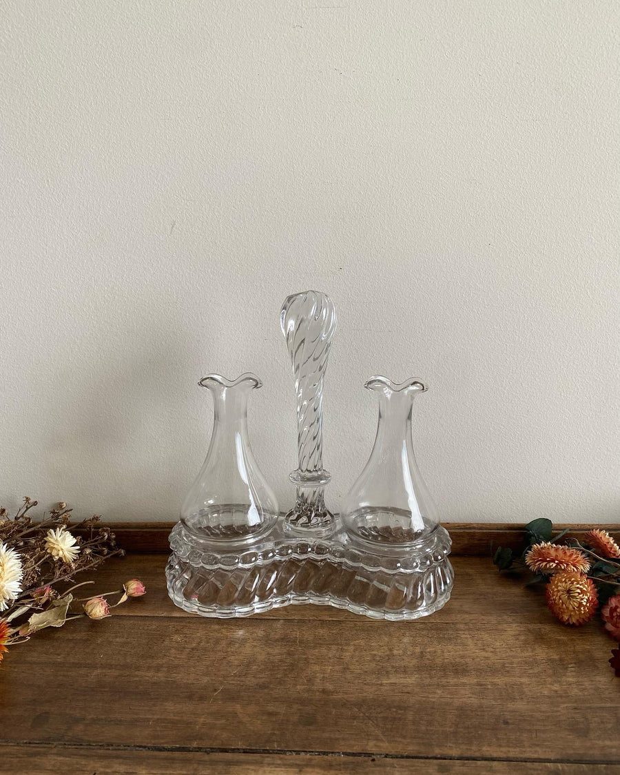 Huilier et vinaigrier baccarat modèle Bambou en verre moulé