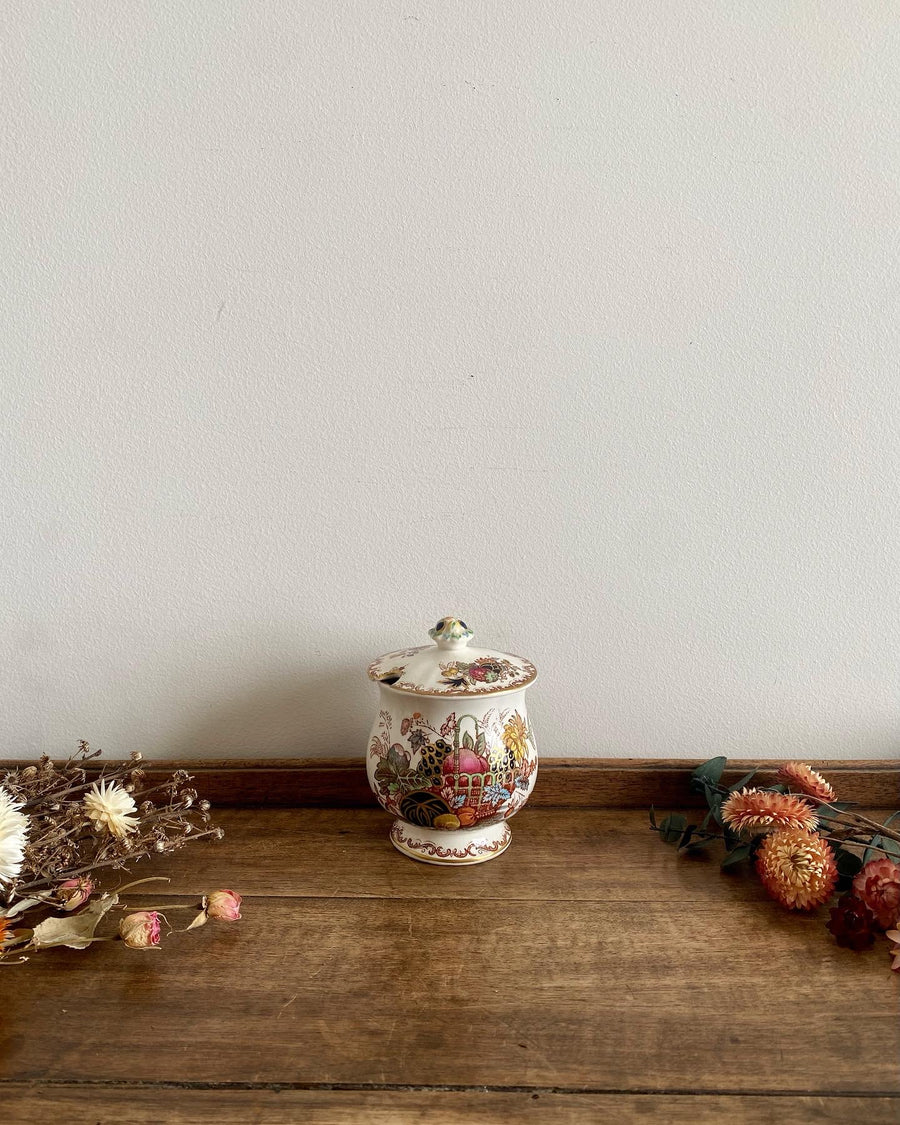 Joli petit moutardier Mason's Ironstone Fruit basket - A noter une ébréchure discrète visible sur les photos.