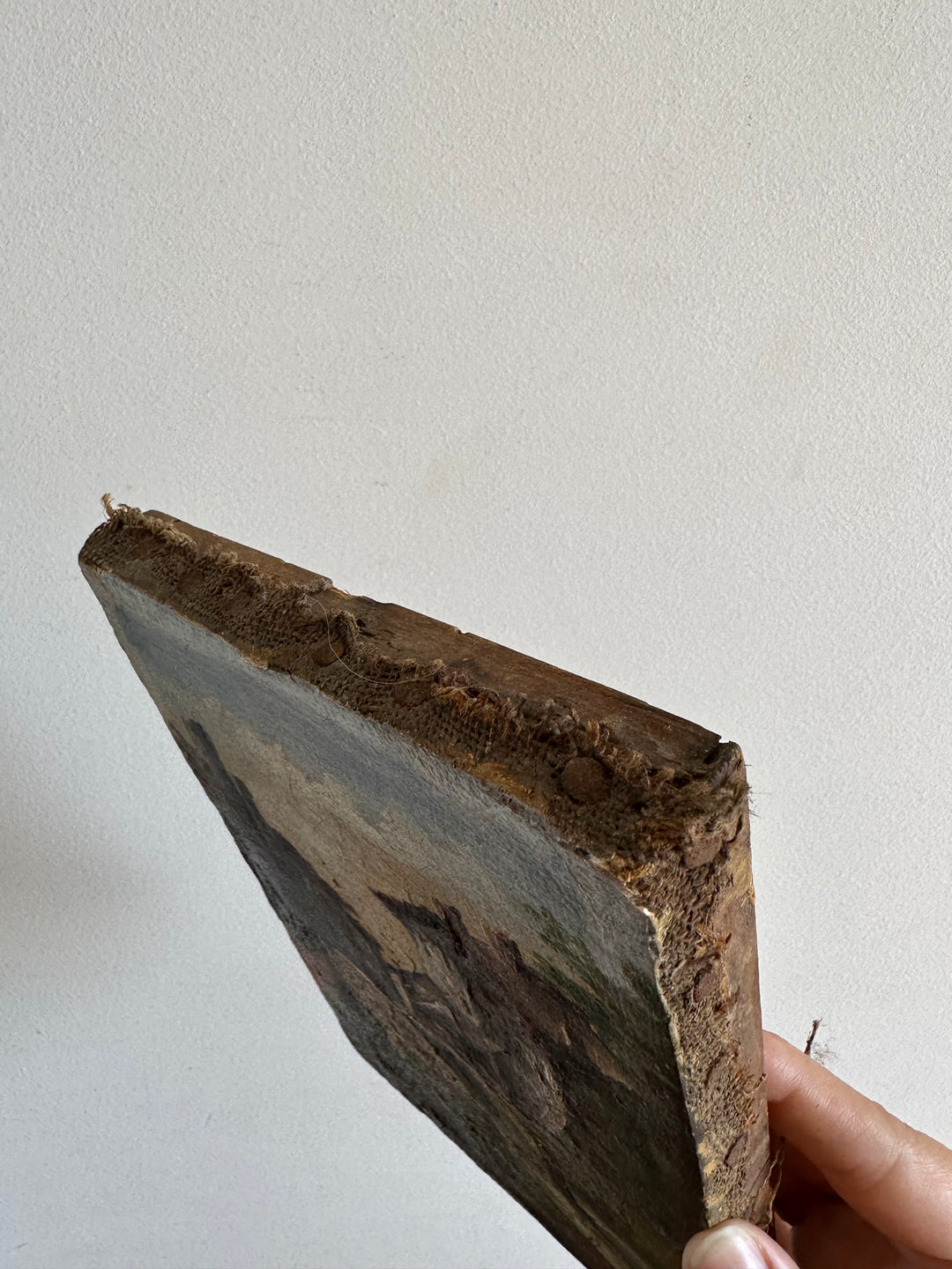 Peinture sur toile hameau et pont signé 19 ème