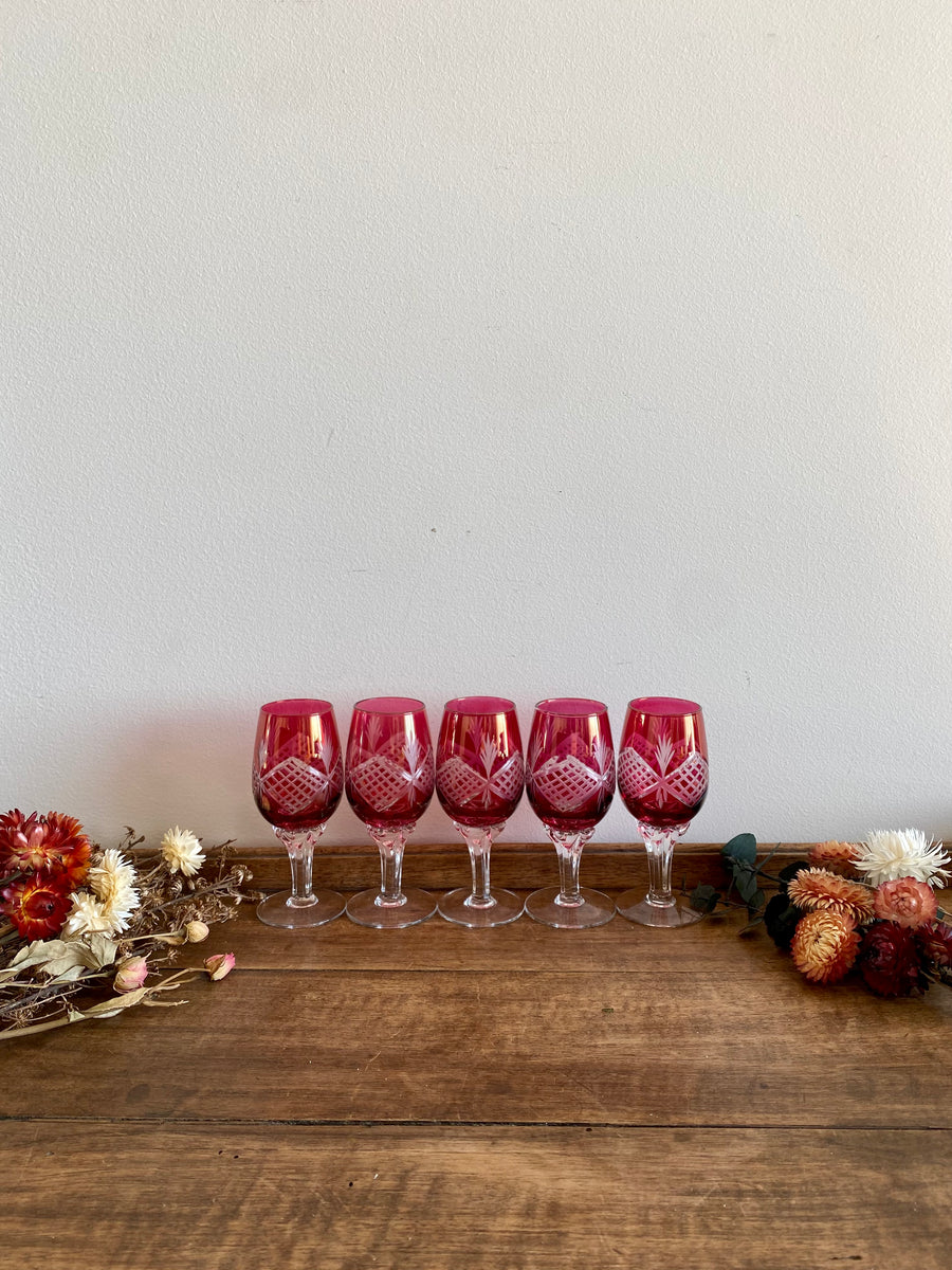 Ensemble de 5 adorables petits verres à liqueur en cristal travaillé