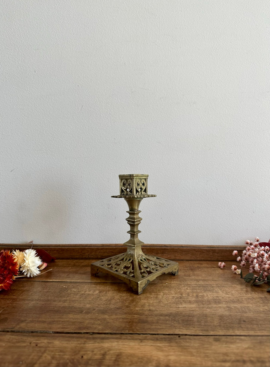 Ravissant bougeoir ajouré à base carrée en bronze.
