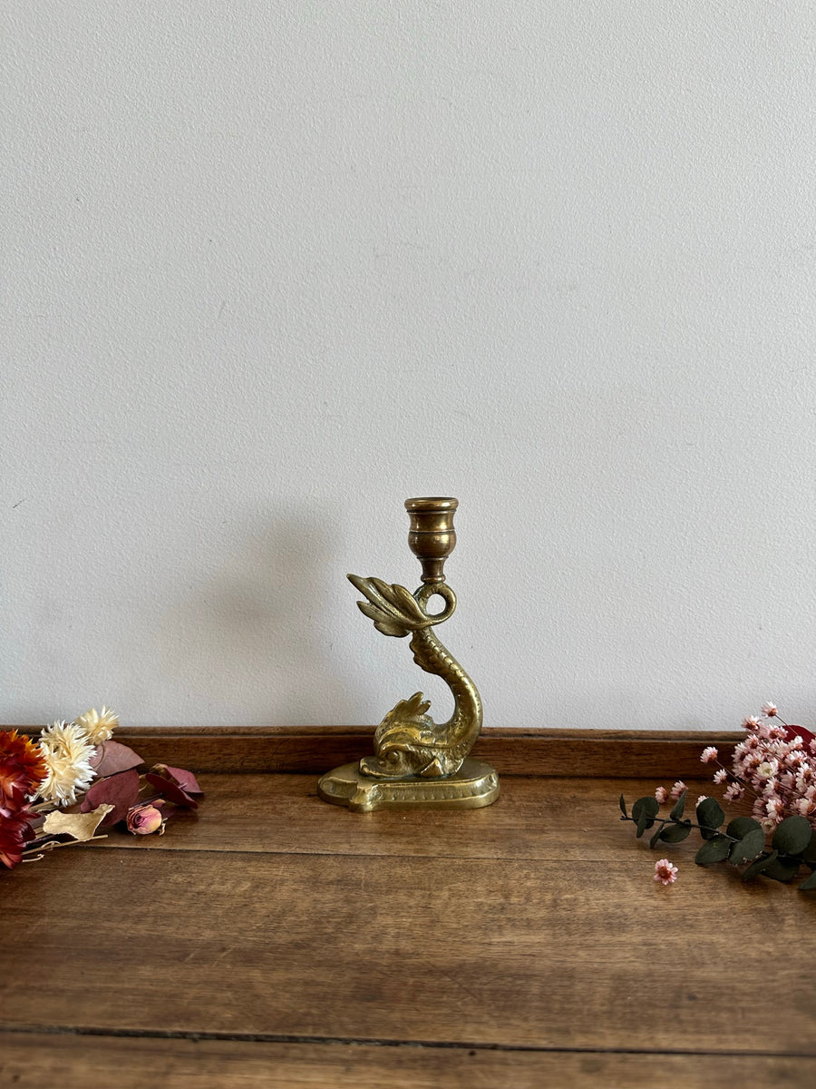 Ravissant bougeoir en bronze représentant un dauphin. On adore sa jolie patine. Objet assez lourd.