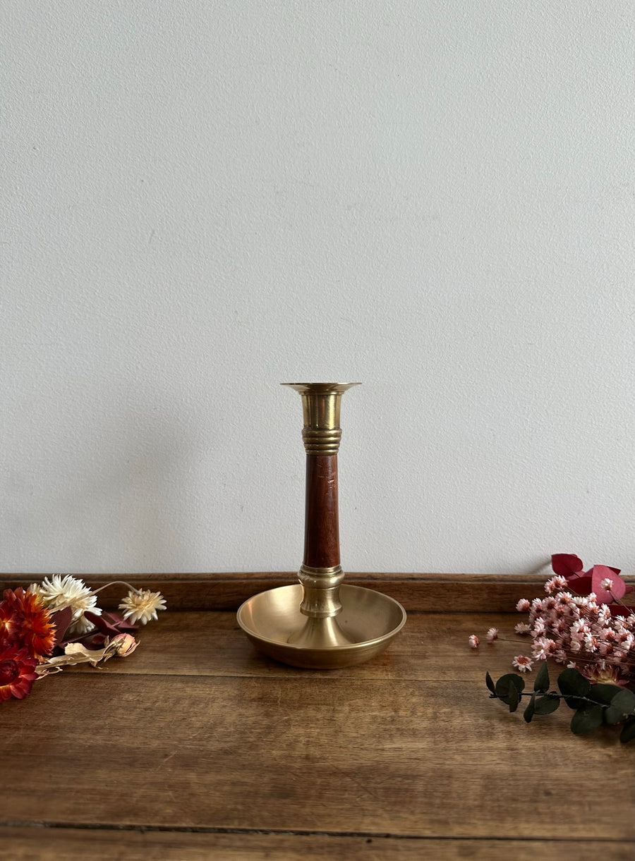 Joli bougeoir élégant, en bois et laiton.