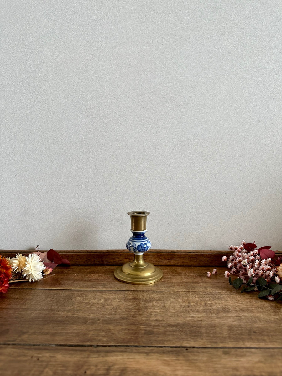 Adorable petit bougeoir en laiton et porcelaine peinte à la main. On adore sa taille mini ! Estimation années 60.