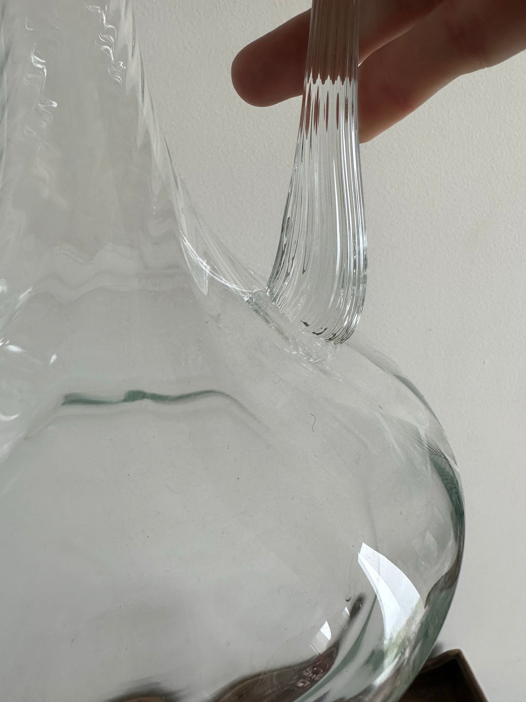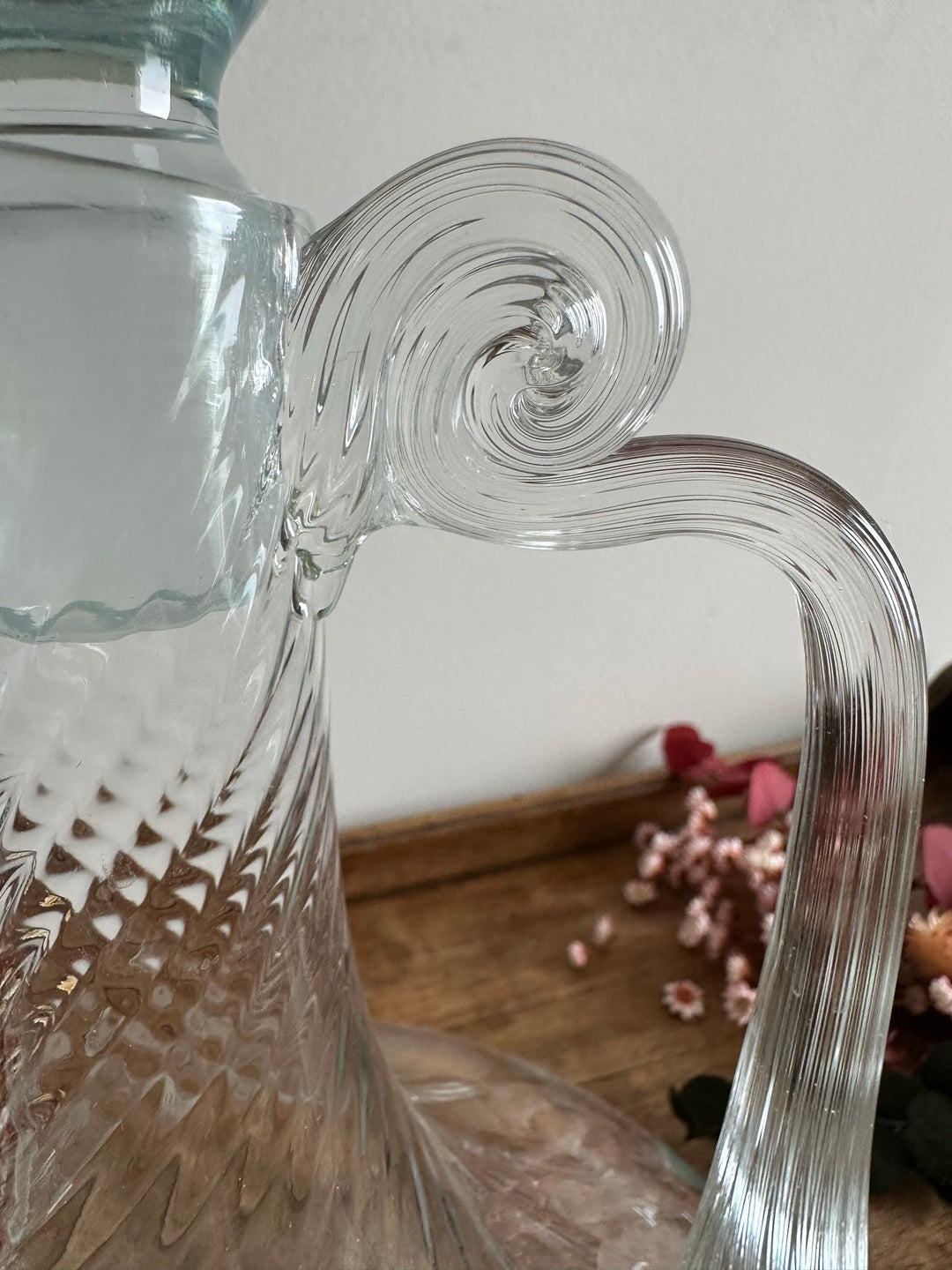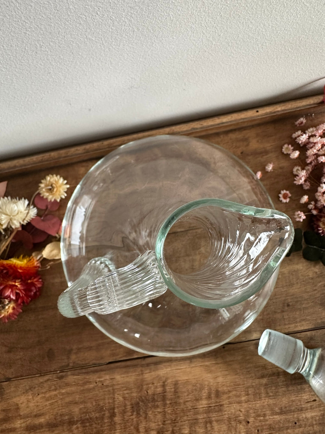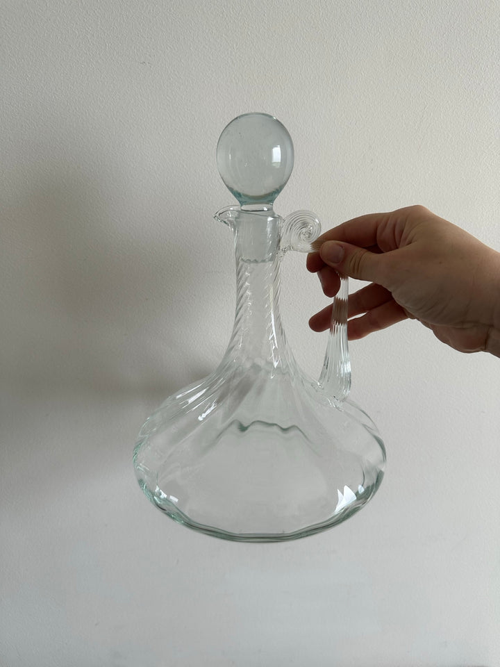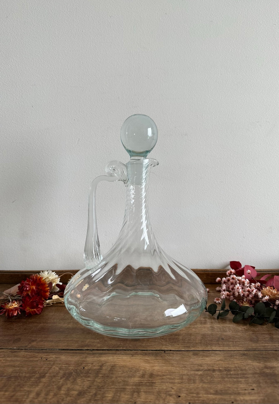 Belle carafe à vin, décanteur en verre moulé. On adore ses formes élégantes et son col torsadé