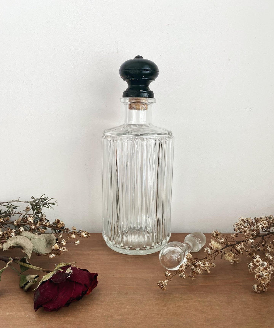 Jolie carafe en verre avec son bouchon d’origine en bois et liège,