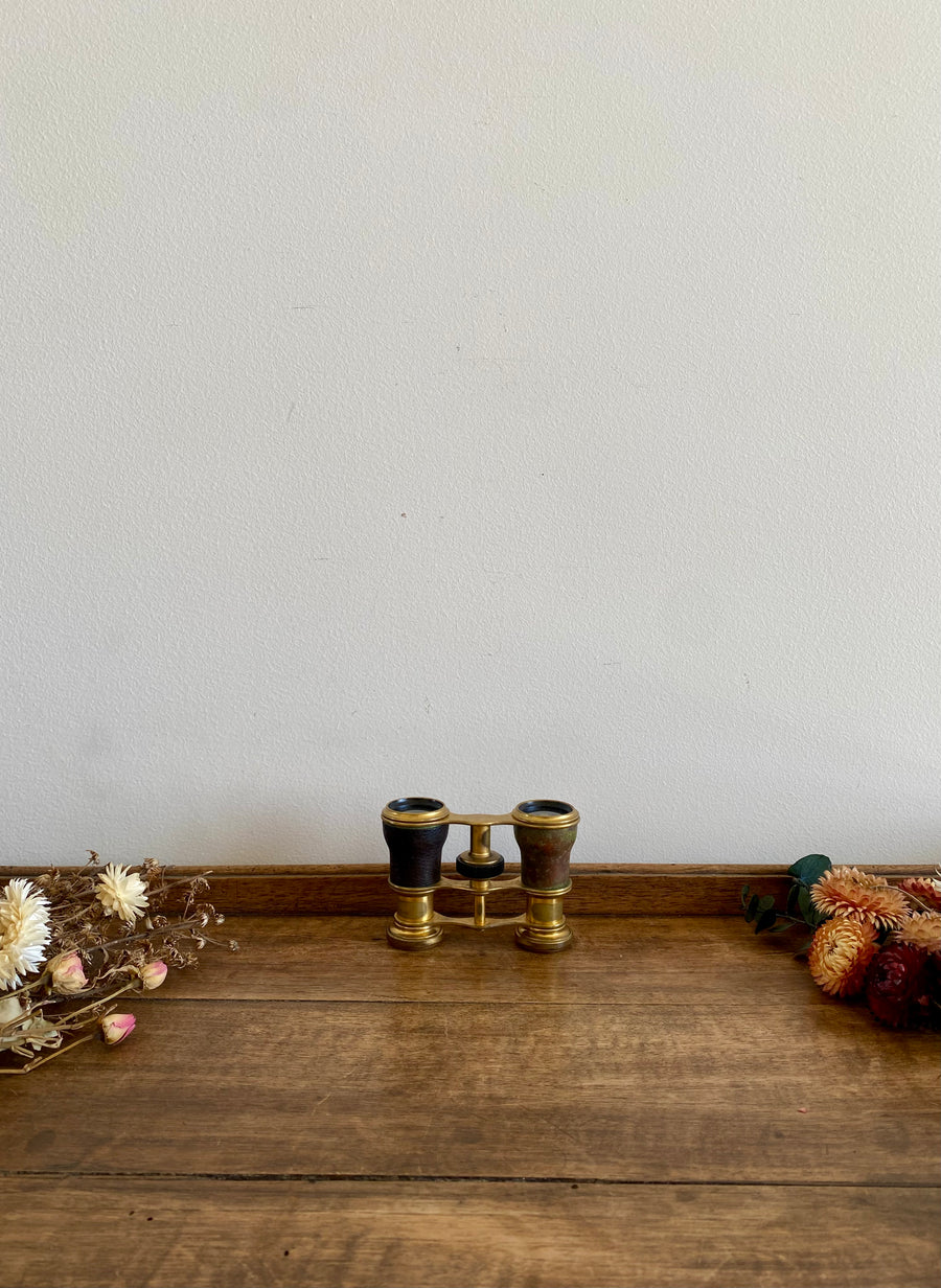 Ancienne paire de jumelles en laiton partiellement gainée de cuir.