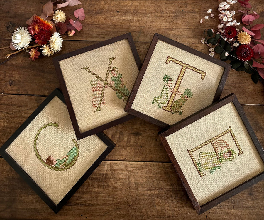 Adorable lot de lettres en points de croix à accrocher au mur. Estimation années 50-60. Vendues à l'unité. De petites imperfections et jolies traces du temps visibles sur les photos.