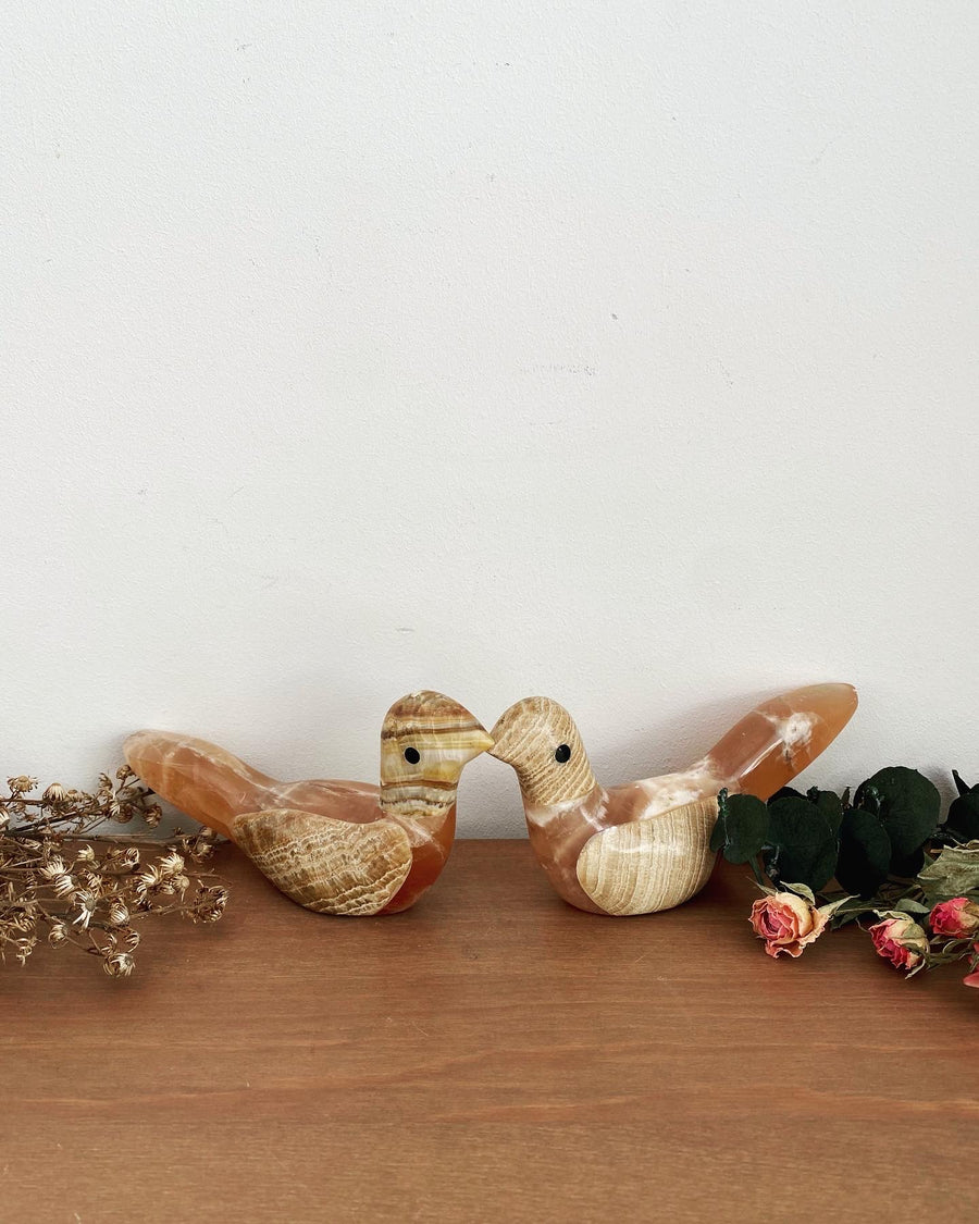 Lot de deux ravissantes colombes en pierre rose