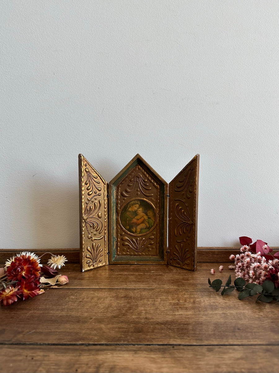 Joli tryptique vénitien doré, une belle patine et des traces du temps visibles sur les photos.