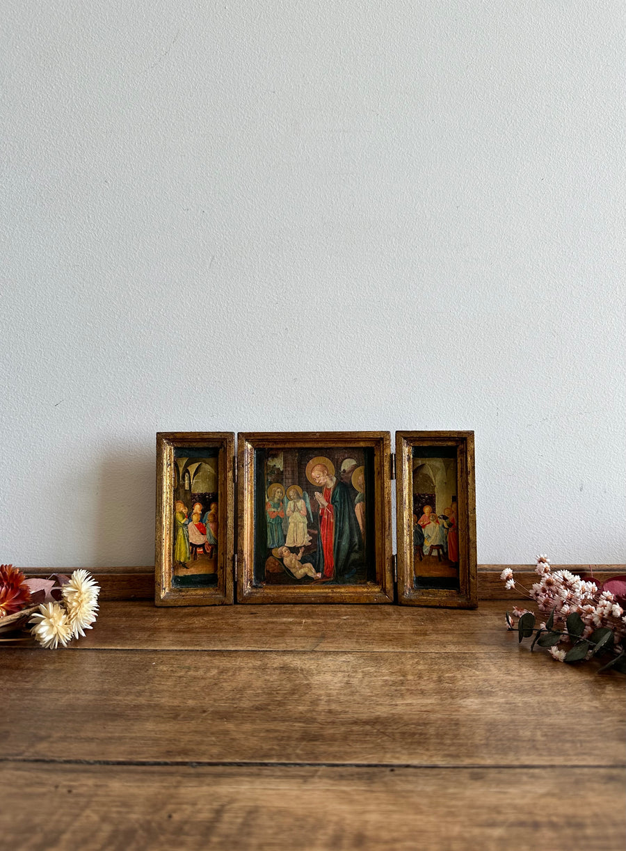 Triptyque religieux en bois forme classique