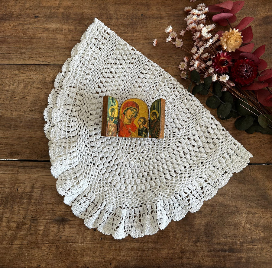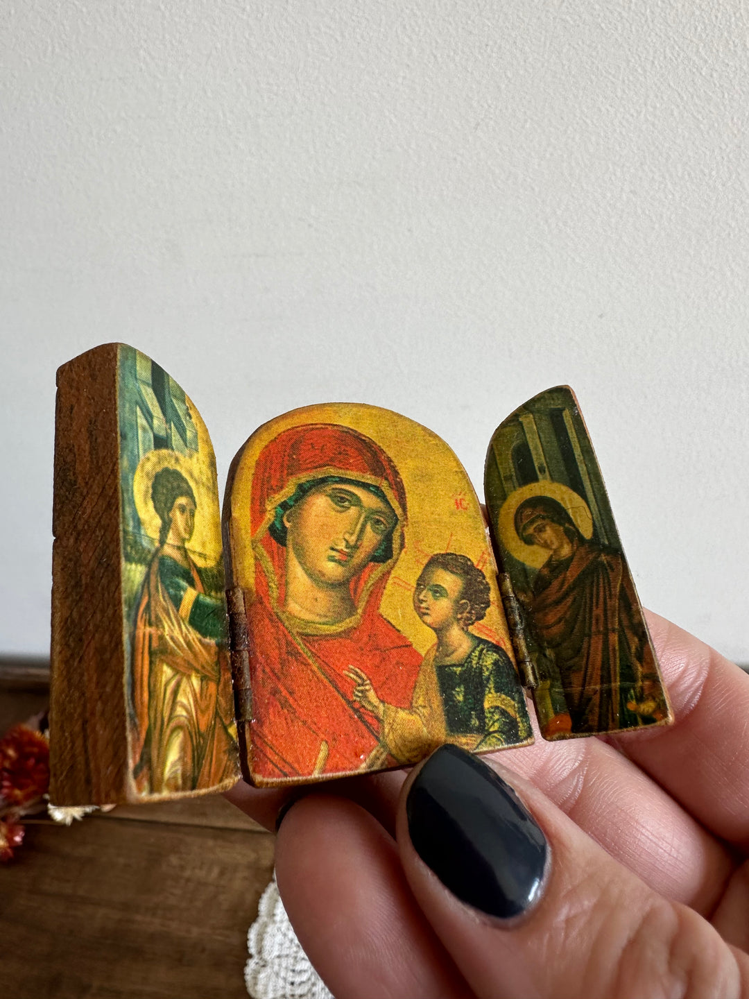Adorable petit triptyque religieux en bois. Estimation années 60.